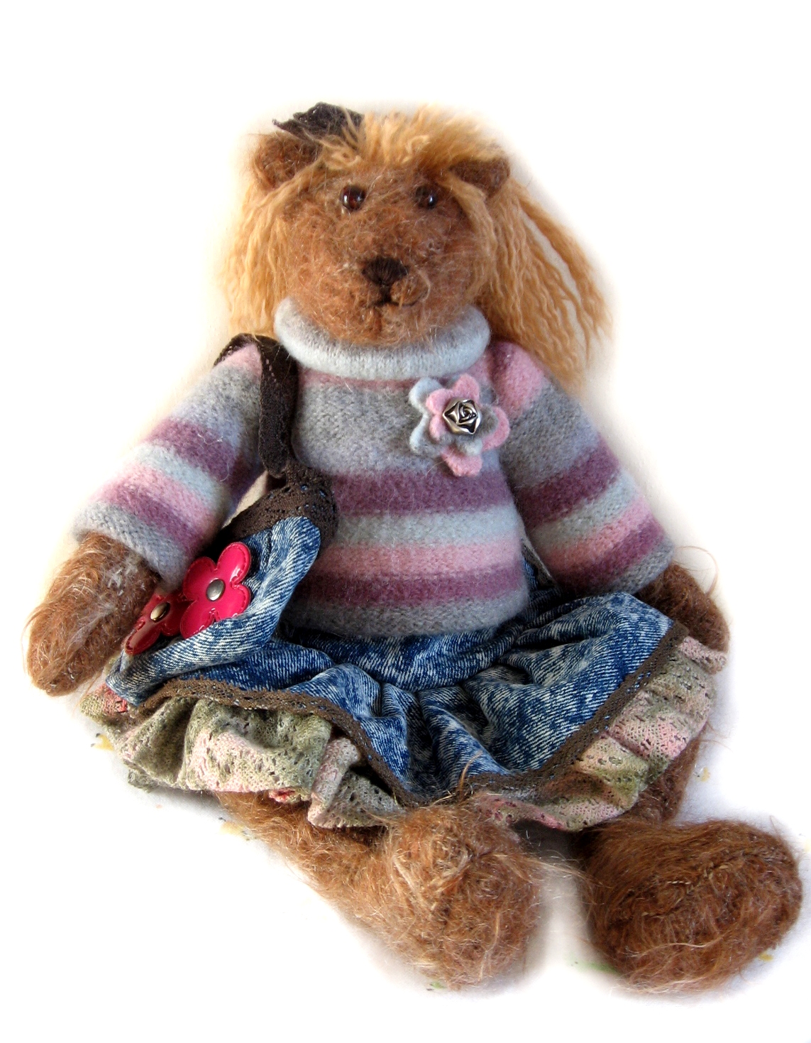 Анжела,40см,сшита из винтажного мохера:),участвовала в выставке Киев-Теддиленд 2010,модница еще та:)моя любимица!!!)живет теперь